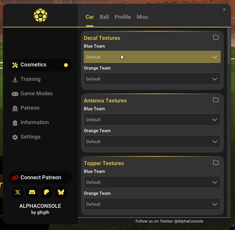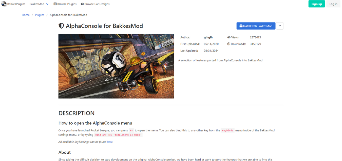 Ouvrir BakkesMod et Rocket League, puis installer AlphaConsole via le lien suivant : AlphaConsole